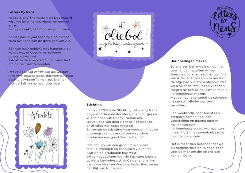 In maart 2021 is de Stichting Letters by Nens opgericht door de dochters, zus, nicht en vriendinnen van Nancy 'Nens' Thomassen.